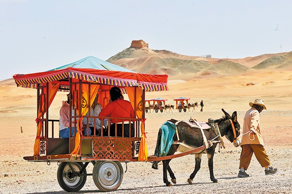 Deep in the Gobi Desert in Northwest China's Gansu province, remnants of the Han Dynasty (206 BC-AD 220) Great Wall stand firm.