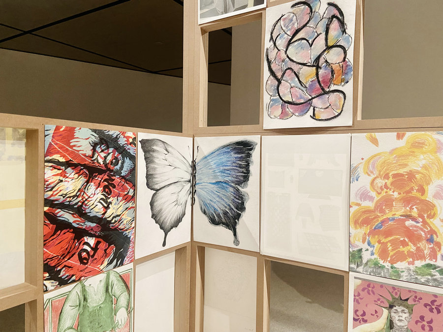 Works by students of the time-honored Royal Academy of Fine Arts in Antwerp are on show at the Central Academy of Fine Arts in Beijing. [Photo by Lin Qi/China Daily]