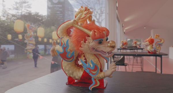 The "Happy Chinese New Year mascot "Jixiang Dragon", a lucky dragon featuring a welcoming gesture and a smiley face, also appeared at the lantern show.
