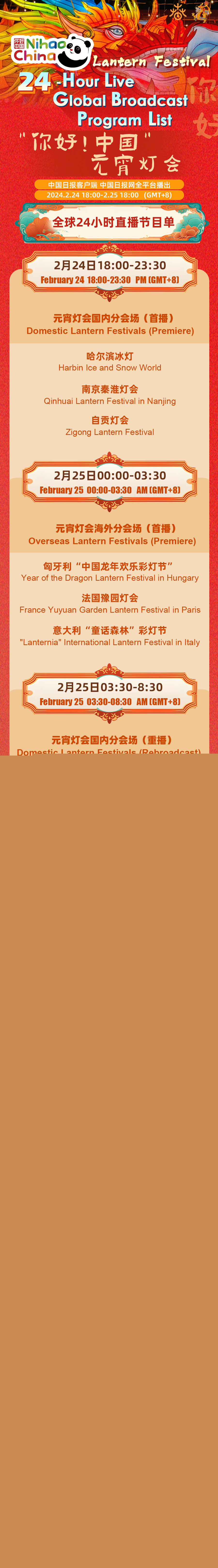 The "Nihao! China" Lantern Festival 24-Hour Live Global Broadcast event is hosted by China Daily website and is part of the 2024 global celebration of Happy Chinese New Year Program.