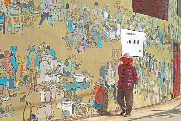 A wall painting of happy villagers playing musical instruments, accompanied by an attentive dog, draws the eye the moment one sets foot in Duqu village. The mural graces the wall of a power distribution room near the entrance to the village on the banks of Dianchi Lake, about 50 kilometers to the southwest of downtown Kunming, capital of Yunnan province.