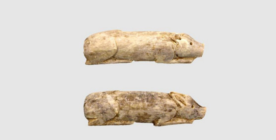 This undated photo provided by cultural relics and archaeology institute of Zhenjiang city shows pig-shaped stone carving discovered from a noble tomb in a cemetery dating back to the Six Dynasties period (222-589) in the city of Zhenjiang, East China's Jiangsu province. [Photo/Xinhua]