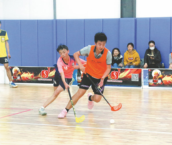 Middle school students compete in a floorball match at Shanghai Opark on April 21. [Photo provided to China Daily]