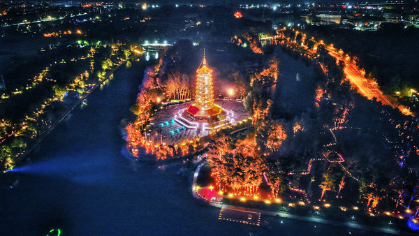 A night view of the landscape scenery of Guihe River in Yanqing district, Beijing. [Photo provided to China Daily]