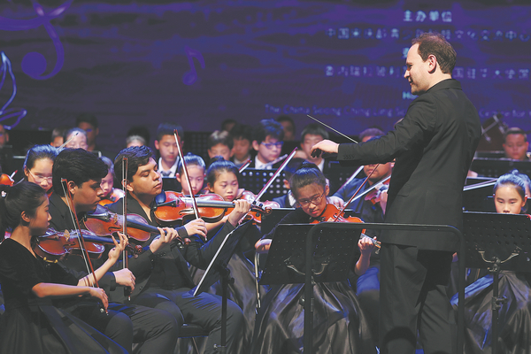The orchestra, whose members are aged 14 to 25, and the Soong Ching Ling Peace Angel Art Troupe Orchestra, an even younger ensemble, performed together.